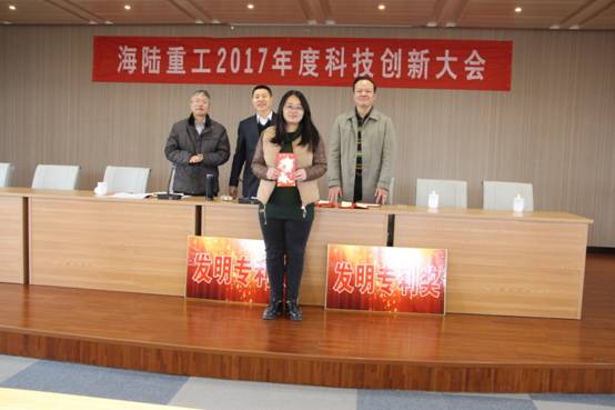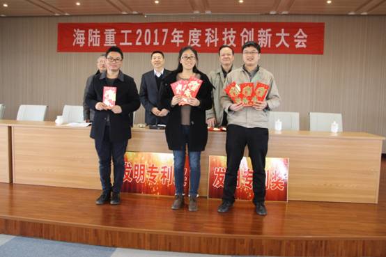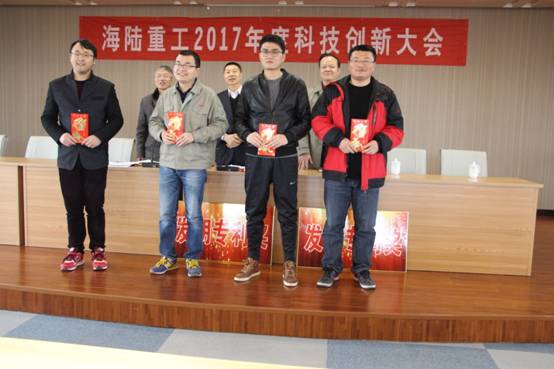 會上,公司副總經理張衛兵回顧總結過去一年科技創新工作取得的成績,進一步明確2017年各事業部的創新目標,并宣讀發布了最新《海陸重工科技創新管理制度》,對過去一年在科技攻關、新產品開發、工藝改革,專利申報工作中作出突出貢獻的技術骨干及相關人員進行獎勵,發放獎金十幾萬元。