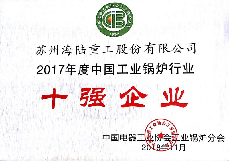 “2017年度中國工業鍋爐行業十強企業”