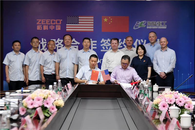 8月23日,蘇州海陸重工股份有限公司與柘科(中國)工程設備有限公司簽署戰(zhàn)略合作協(xié)議。美國ZEECO全球總裁及首席執(zhí)行官Darton Zink先生率領高級副總裁Terry W. Dark、制造總監(jiān)Darrell Thomas、市場和業(yè)務總監(jiān)Brent Williamson、東南亞分公司總經(jīng)理Anand Gokhale、柘科(中國)總經(jīng)理馬原及管理團隊,海陸重工董事長徐元生、總經(jīng)理徐冉等公司主要領導共同出席戰(zhàn)略合作簽約儀式。